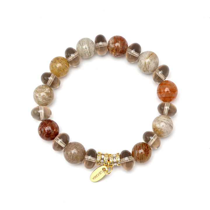 Made with Natural Multi-layer Phantom Quartz and Smoky Quartz with Gold-Plated Zircon Charm.