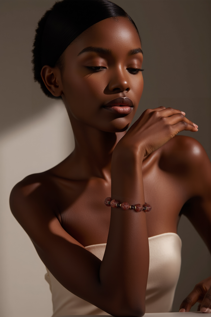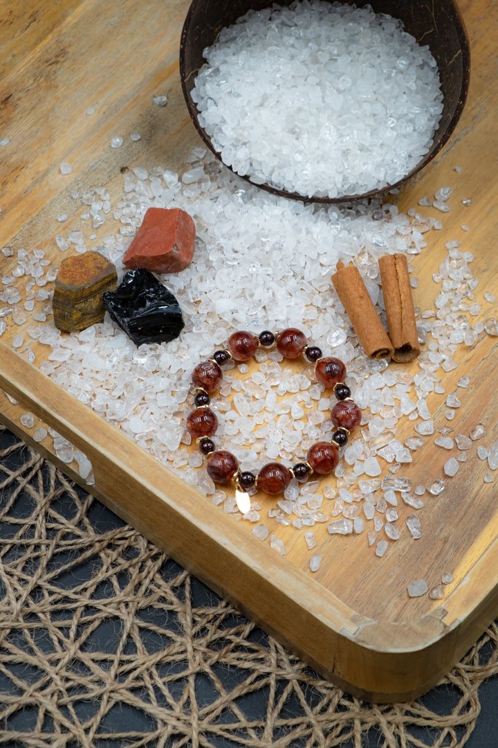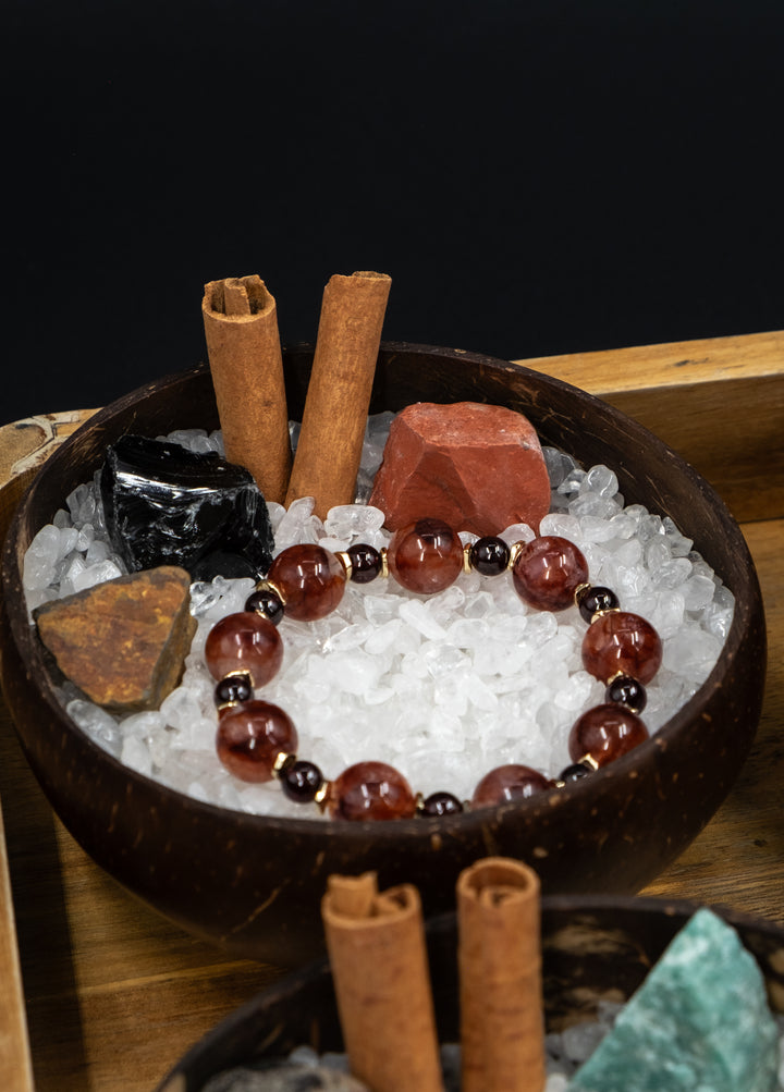 Garnet, combined with Red Hematoid Quartz, creates a dynamic duo of passion and stability. Garnet ignites the life force and inspires courage, while the red hematite inclusions in the quartz enhance grounding, clarity, and emotional balance.