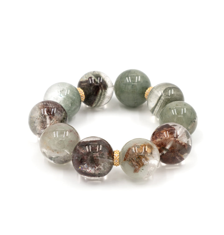 Made with Monet's Garden Red-Green Phantom Quartz with Gold-Plated Zircon Charm, showcasing a rich natural color palette and profound energy.