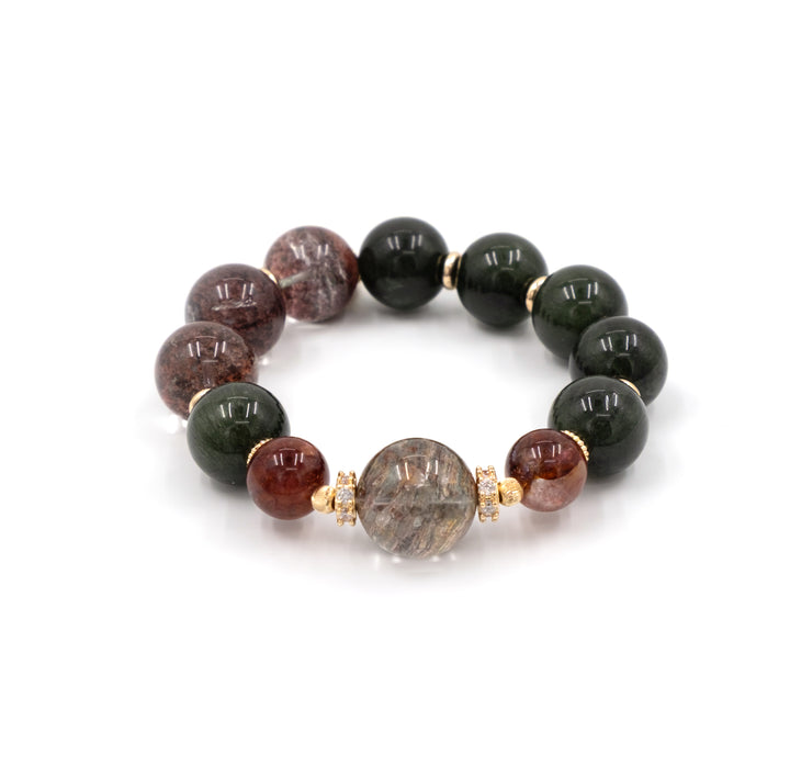 Made with Natural Phantom Quartz, Green Rabbit Hair Phantom Quartz, Half Red Garden Phantom Quartz & Red Flower Phantom with Gold-Plated Charm.