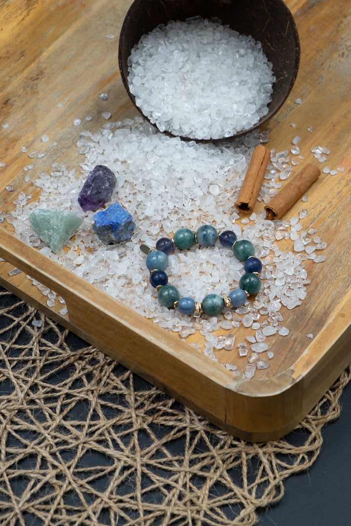 Gemstone Form: When cut and polished, Blue-Green Kyanite displays elegant striations of color, symbolizing refined communication, integrity, and self-mastery.
